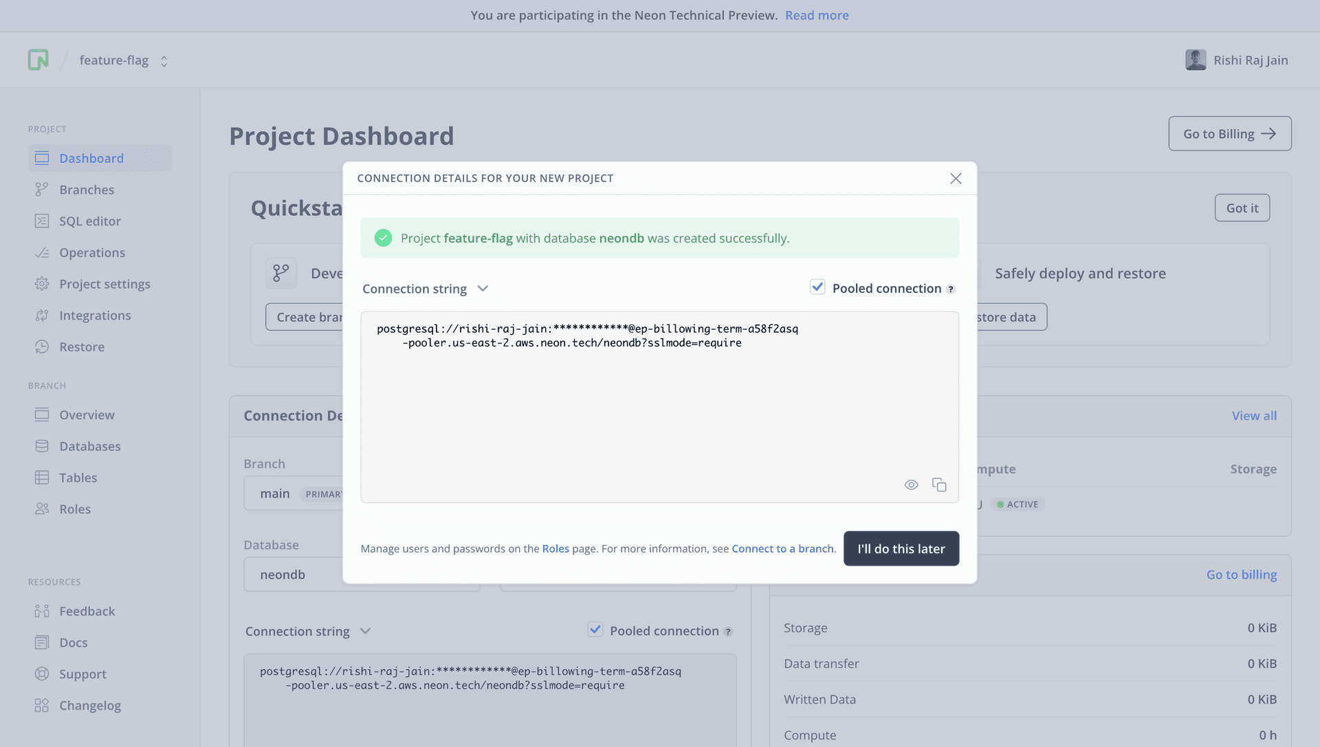• A Neon account – The feature flags will be defined (or mutated) in a Postgres database