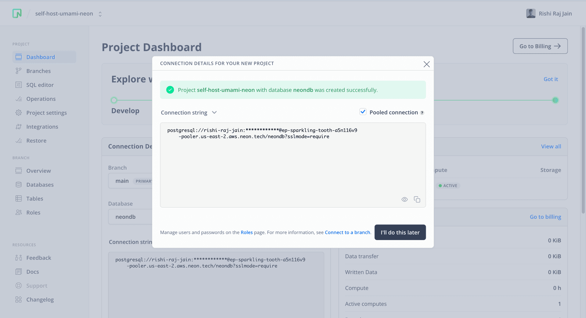 Provisioning a Postgres Database using Neon